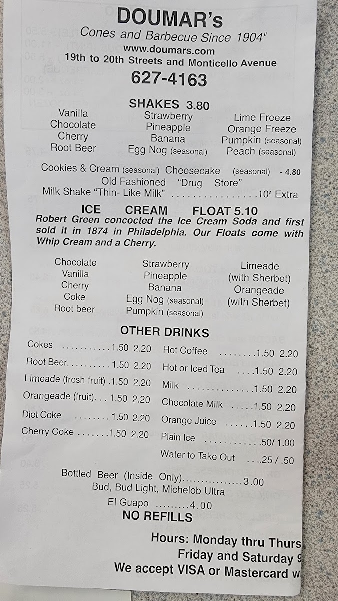 In conclusion, Doumar's Cones & Barbecue is not just a dining establishment; it’s a beloved local treasure that resonates with the community. Whether you’re stopping by for a quick bite or indulging in a leisurely meal, there's something for everyone to savor. With its fair prices and heartwarming service, Doumar's is a culinary destination that brings joy to all who visit.